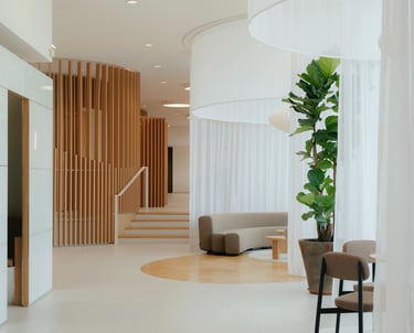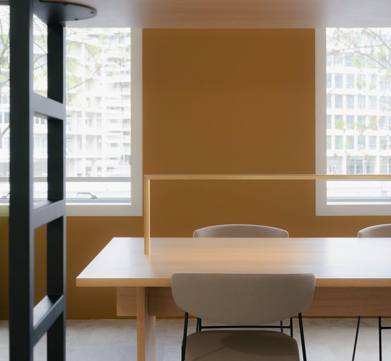 Un soin particulier a été apporté à la conception des pôles d’échange, alliant ergonomie et raffinement, afin d’optimiser le confort et la fluidité des interactions au sein de l’établissement.