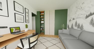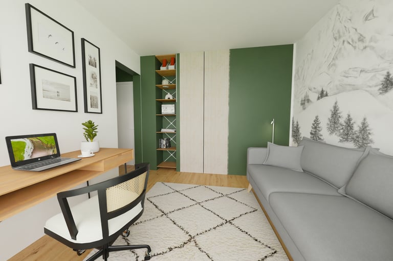 Un bureau/chambre d’amis : une solution flexible pour concilier télétravail et hébergement ponctuel.